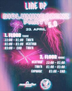 Also schnappt euch eure Freunde und die leuchtenden Outfits 🌌 und kommt vorbei. Wie immer gibt’s Tattoos, Neon-Bodypaint und Knicklichter🔥