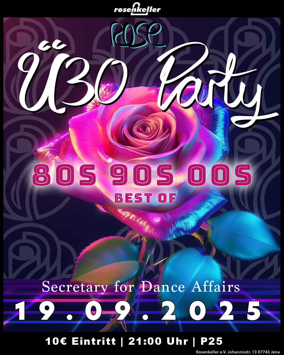 Unsere Ü30 Party geht in die nächste Runde! 💃🏽🎶 🔥 Freut euch auf die besten Pop und Rock Songs der 80er, 90er und 00er Jahre! ___ Start: 21:00 Uhr ✨ Einlass ab 25 Jahren Eintritt: 10€ Wir freuen uns auf euch! 🌹 __________________________________________________________________ no antisemitism no racism no sexism no homohostile no ableism – NO ... Weiterlesen |
