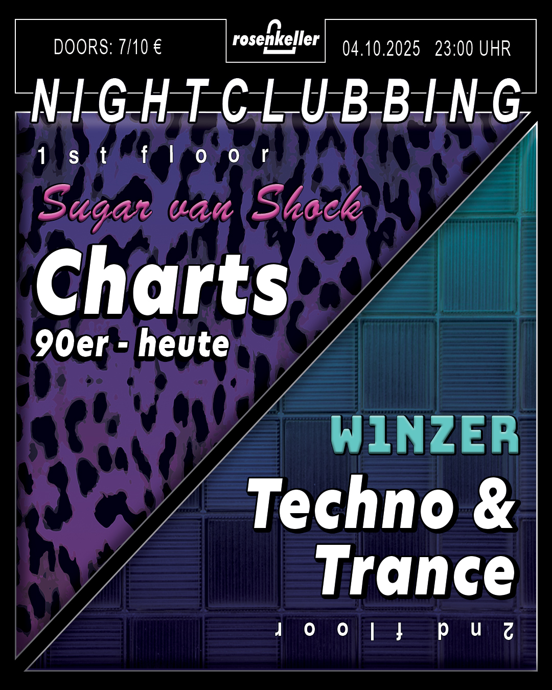 🪩Jeden Samstag Disko im Rosenkeller!🪩 1st floor: Charts - 90er bis heute von Sugar van Shock2nd floor: Techno & Trance von W1nzer Start: 23:00 UhrEintritt: 10€ / 7€ ErmäßigtP18 Wir freuen uns auf euch! 🌹 __________________________________________________________________ no antisemitism no racism no sexism no homohostile no ableism - NO HATE __________________________________________________________________ 🪩Disco every Saturday in the ... Weiterlesen |