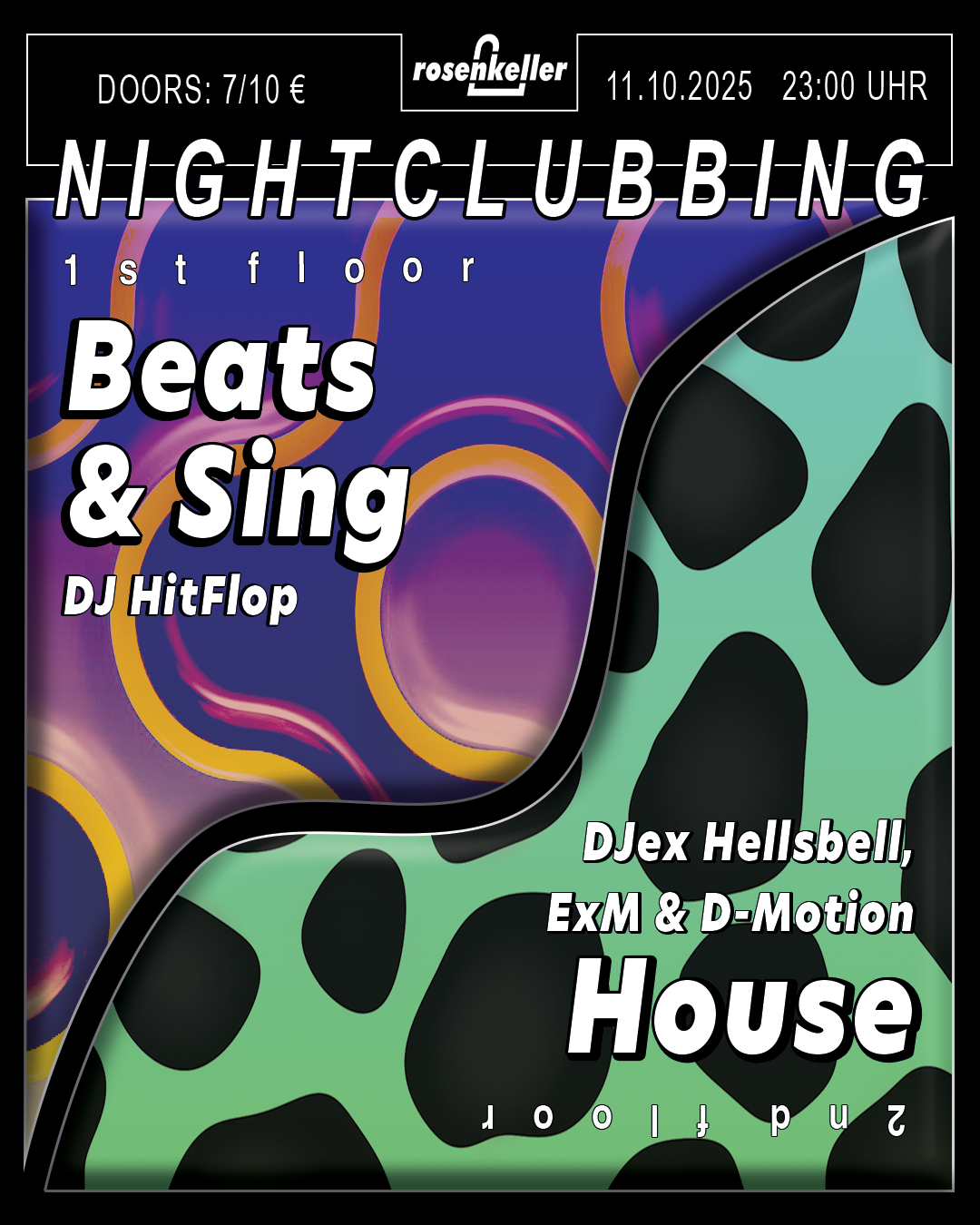 🪩Jeden Samstag Disko im Rosenkeller!🪩 1st floor: Beats & Sing von DJ HitFlop2nd floor: House von DJex Hellsbell, ExM & D-Motion Start: 23:00 UhrEintritt: 10€ / 7€ ErmäßigtP18 Wir freuen uns auf euch! 🌹 __________________________________________________________________ no antisemitism no racism no sexism no homohostile no ableism - NO HATE __________________________________________________________________ 🪩Disco every Saturday in the Rosenkeller!🪩 ... Weiterlesen |